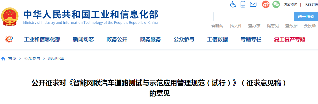 为营造更好的测试示范环境,共促智能网联汽车产业生态健康发展,工业和信息化部会同公安部、交通运输部组织行业机构、重点企业等开展了《智能网联汽车道路测试与示范应用管理规范(试行)》的修订,已形成征求意见稿,现公开征求社会各界意见。