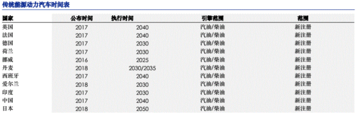 到2018年,以欧盟成员为主的多个国家都对限制或终止内燃机销售注册作出承诺甚至出台法案,例如法国和英国宣布在2040年禁止销售内燃机汽车的销售,挪威要求2025年100%销售新能源汽车,我国要求是在2025年新车销量中25%是新能源汽车。