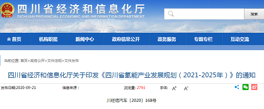川经信汽车〔2020〕168号|四川省经济和信息化厅关于印发《四川省氢能产业发展规划(2021-2025年)》的通知
