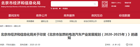 《北京市氢燃料电池汽车产业发展规划(2020-2025年)》印发